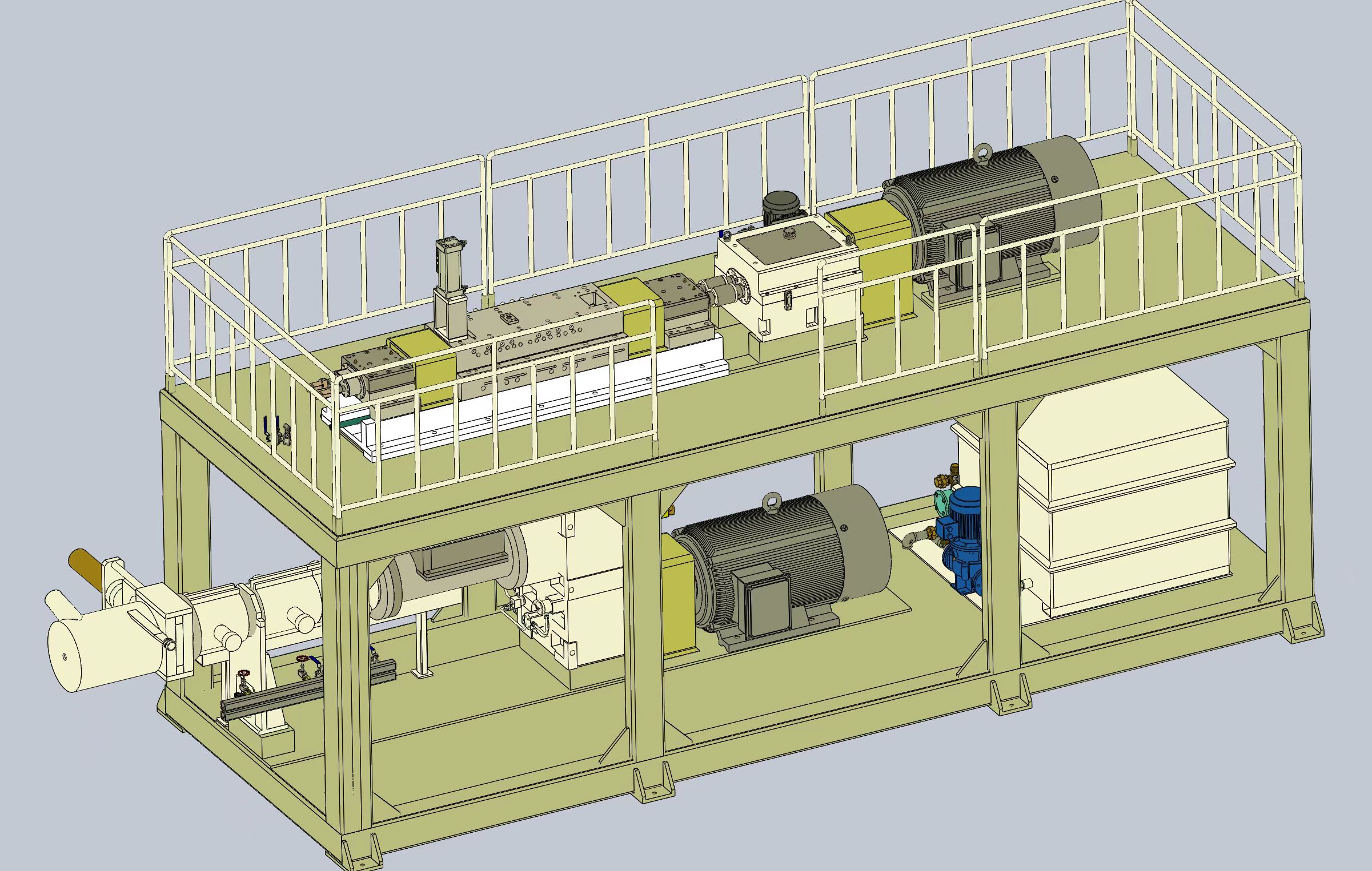 1、占地面積小,主機長寬高為1600X1350X1650mm,帶有移動腳輪。 2、集成連續(xù)密煉與雙螺桿的優(yōu)勢特點,連續(xù)式擠出,方便各種研發(fā)測試使用。 3、能耗低,裝機裝機功率22KW,實際操作功耗更低,類似一臺中央空調功率。 4、產量范圍1-10Kg/h,方便少量物料測試,伺服電機喂料驅動更穩(wěn)定精確。 5、一體化設計,電控冷卻系統全部集成,無需額外安裝,接電即用。 6、連續(xù)密煉機可翻轉腔體和雙螺桿快開機頭設計,方便清理及檢查維護。 7、全系統安全連鎖,觸摸屏操作,多處安全停機保護,使用更放心。 8、整機1噸,方便裝卸。